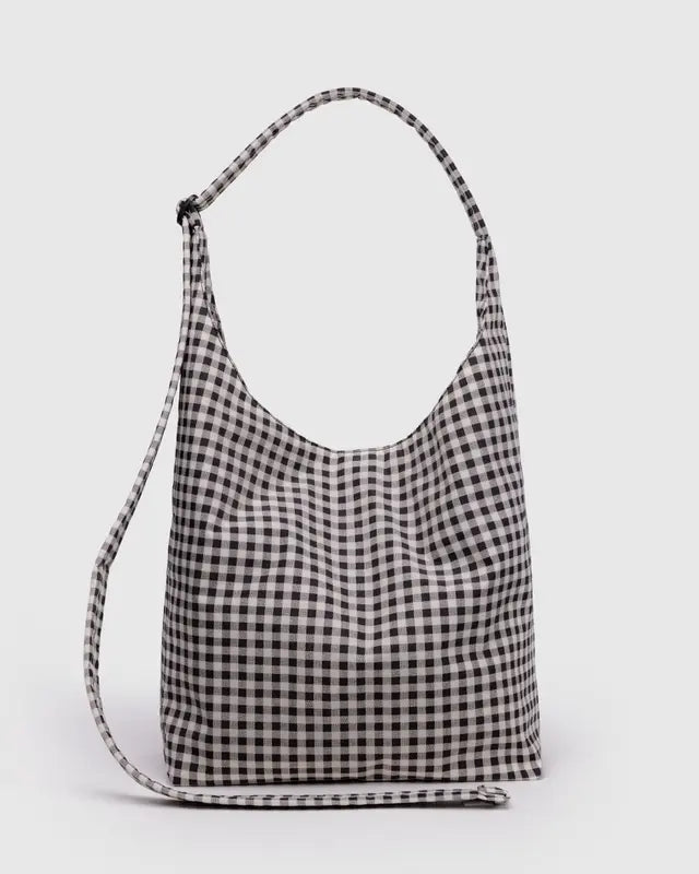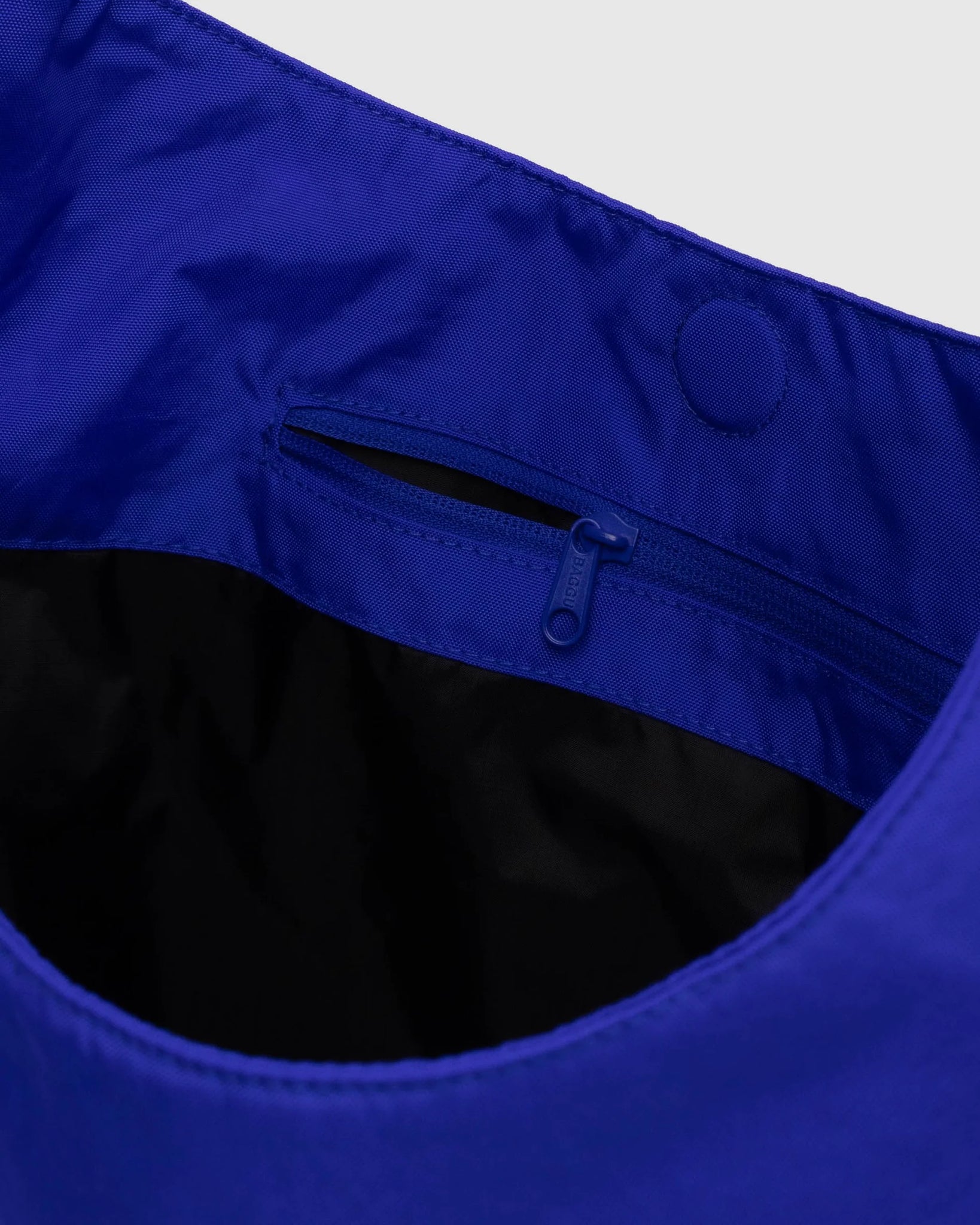 A slouchy, softly structured nylon bag with an adjustable strap. Interior zip pocket with a magnetic closure. Fits a 13/14” Puffy Laptop Sleeve.
