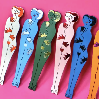 The perfect gift for the bookworm! Double sided bookmark: One side two lovers hugging, one side BOOK LOVERS. Green leather.
