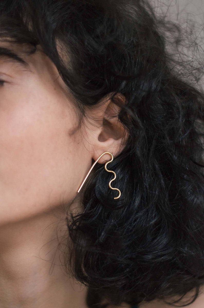 Made in Barcelona, by designer SewaSong, these earrings have a beautiful vintage modern vibe and make any outfit pop! These wavy abstract and lightweight earrings are simply adorable.