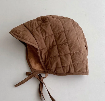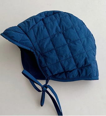 A super cute and classic quilted bonnet to keep your little one cozy all fall/winter! Quilted winter material exterior and cozy fleece-lined. Fits toddler- kiddo size (we are going to estimate 2-10?).