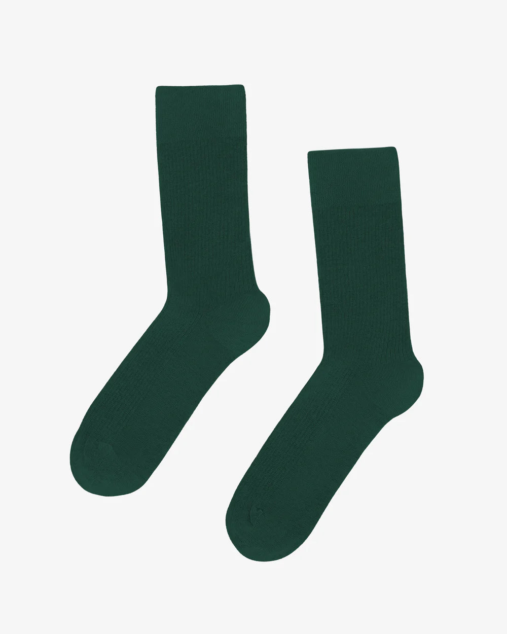 Classic rib-knitted sock made from high quality organic cotton. The sock is one-size and the fine rib pairs well with any look. The sock has a reinforced toe and heel and a hand-linked toe for seamless feel and comfort. Available in a rainbow of colours. .