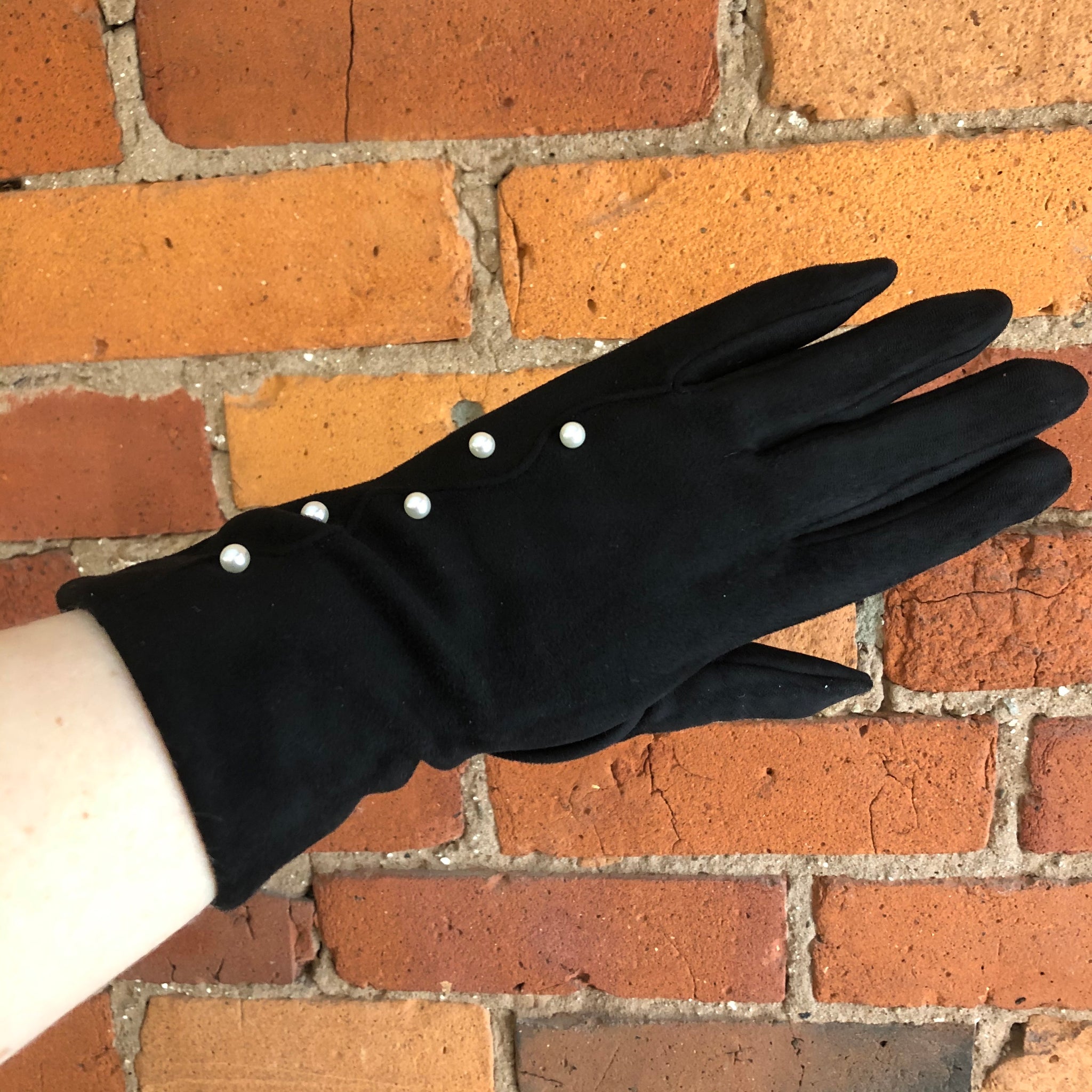 Everyone needs a solid pair of winter gloves...so why not get a pair of vintage-inspired gloves and dream about nights at the opera! These gloves have a soft suedey feeling, a lovely retro squiggle seam and are decorated with small pearls! Oh my- what a delight! The index fingers have a phone screen sensor so you can still use your phone while staying warm.