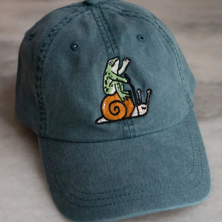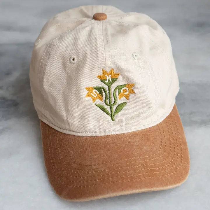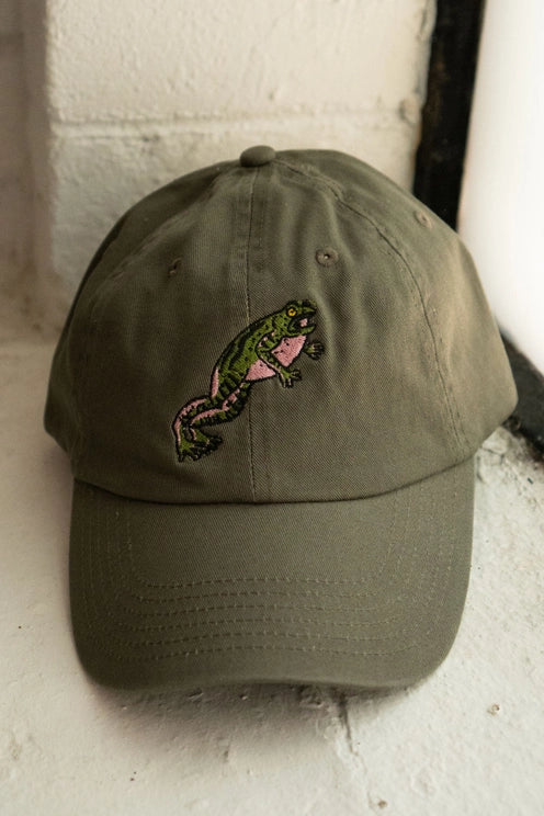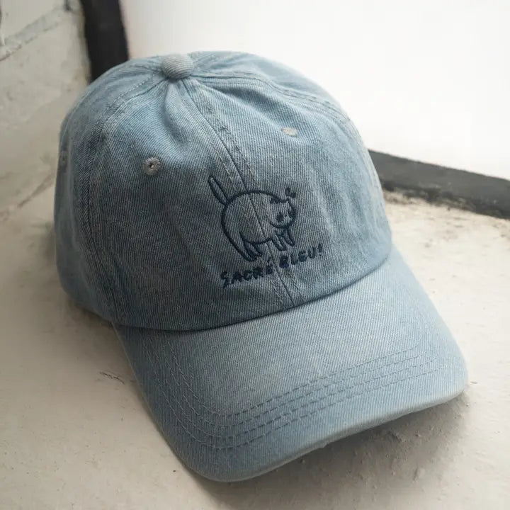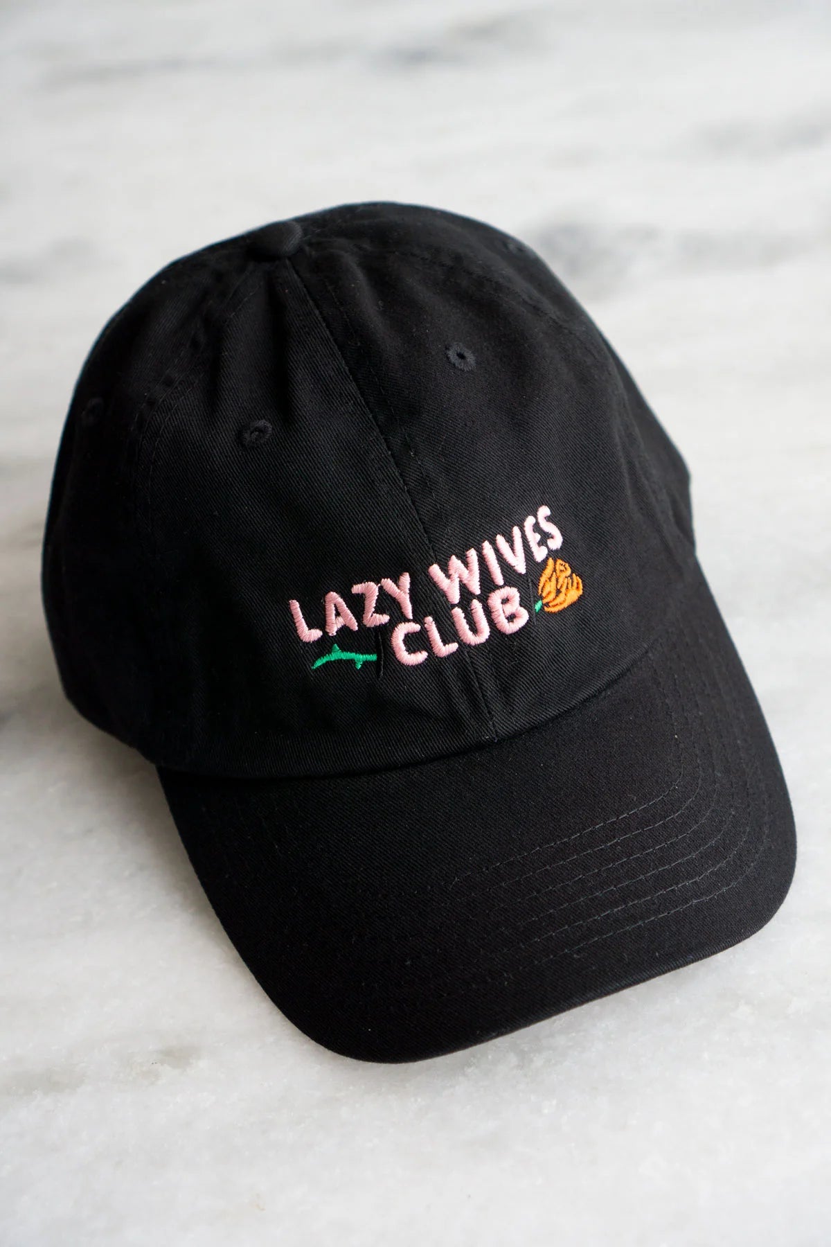 Captured in embroidery on a dad hat from Stay Home Club.