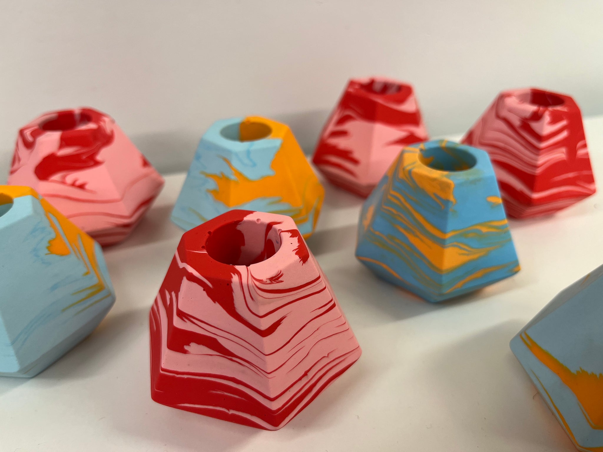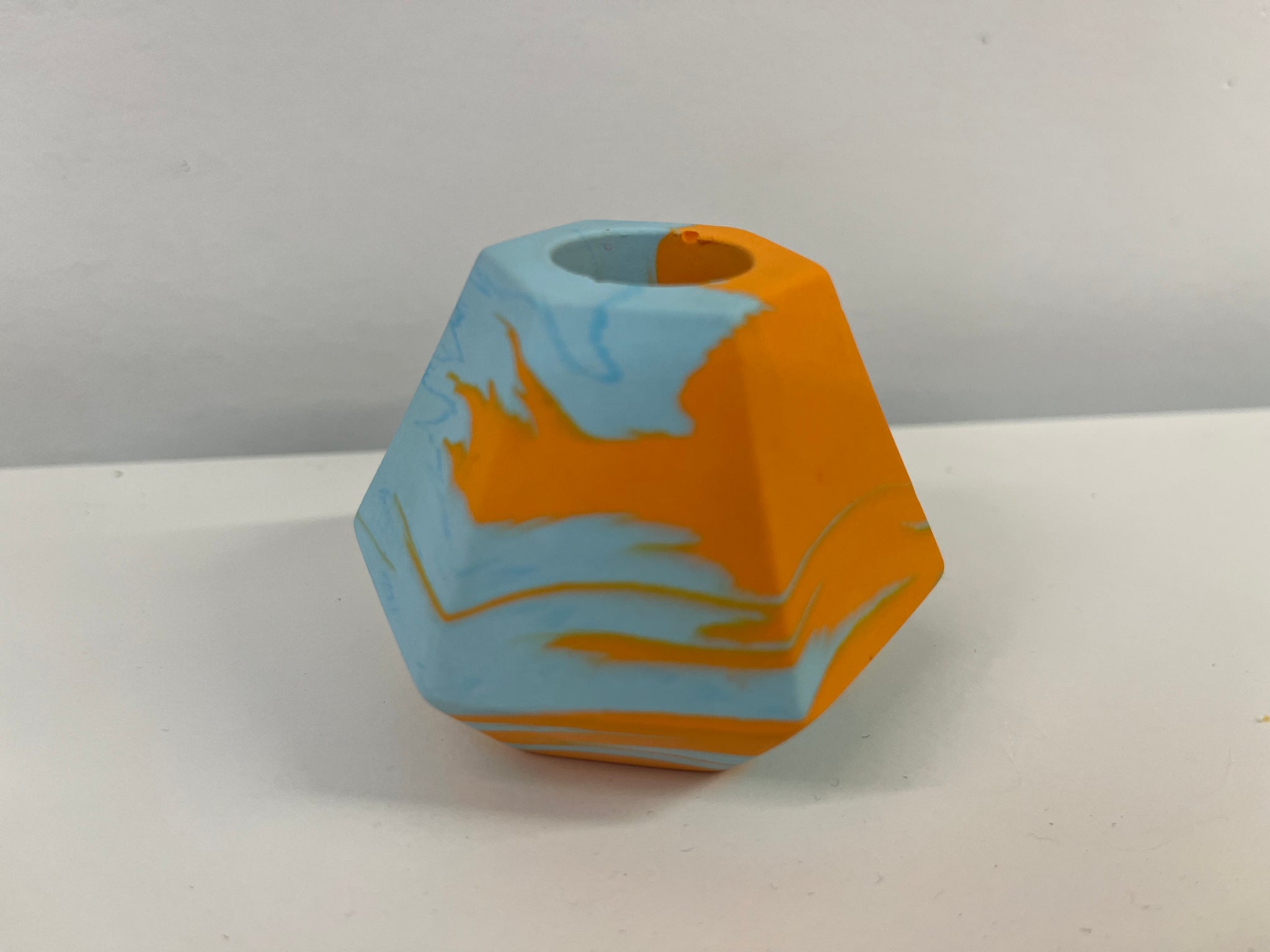 Jesmonite marble candlestick holder in a two colour marble finish. Made in Glasgow by Terrazzo & Titz. Fits a standard candlestick (7/8 inches).
