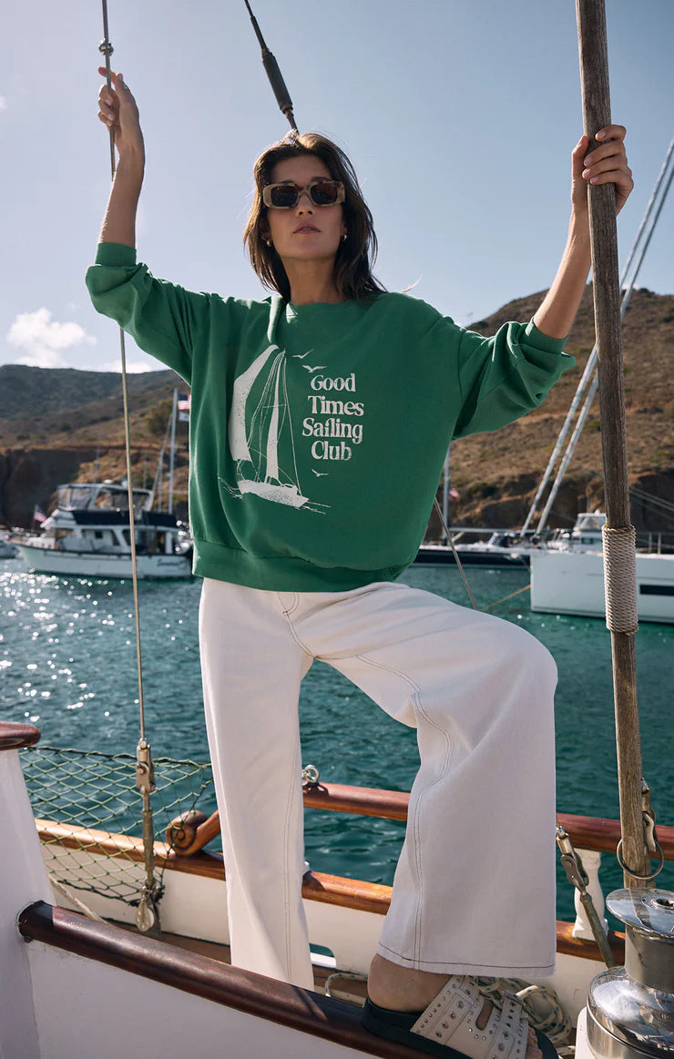 Set sail in style with this ultra-cozy oversized sweatshirt, crafted from soft 100% cotton brushed fleece and featuring a breezy sailboat screen print graphic. Effortlessly laid-back, it’s the perfect layer for carefree days and coastal vibes.