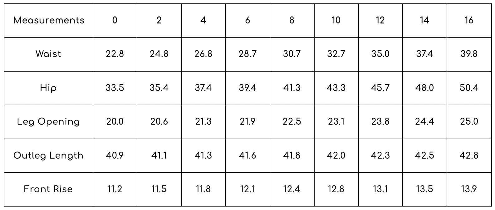 Australian Size Chart: