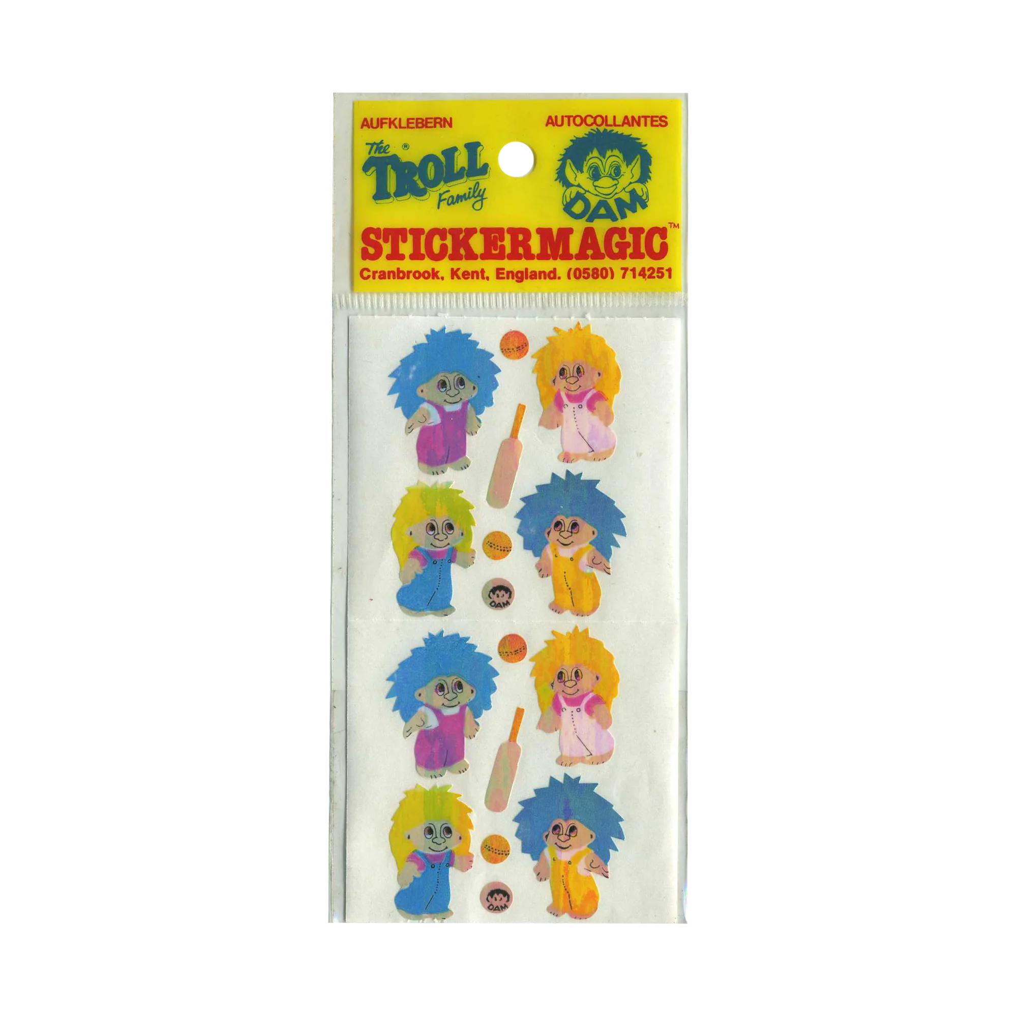 Time to get nostalgic! Super limited edition troll packs. Retro deadstock stickers (meaning yes they are the ones you had when you were a kiddo!) in a range of styles. And these packs are full of the cutest styles. Childhood unlocked!
